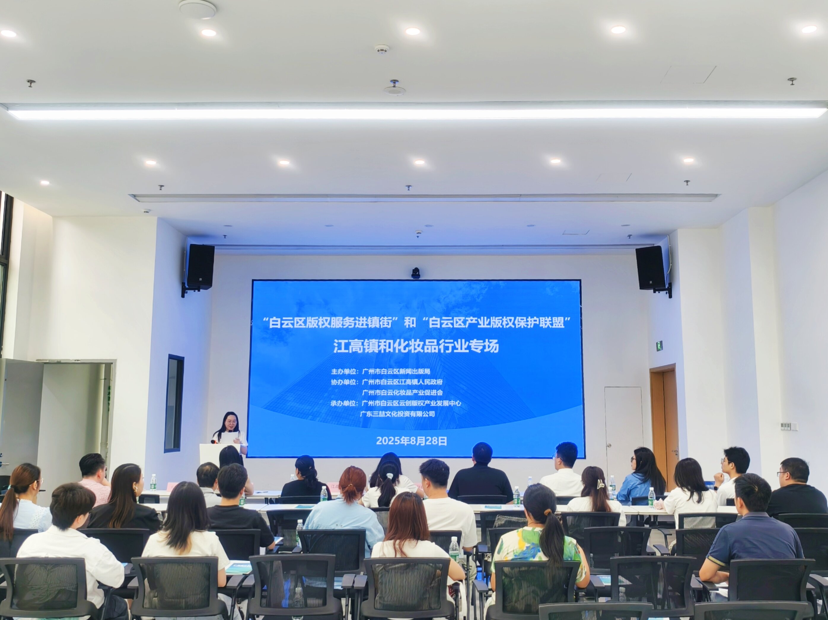近日,“白云区版权服务进镇街”系列活动第二期暨“白云区产业版权保护联盟”专项行动在白云美湾凤翔产业园举办。本次活动聚焦江高镇化妆品产业,由白云区新闻出版局主办,江高镇人民政府、白云化妆品产业促进会协办,云创版权产业发展中心承办。