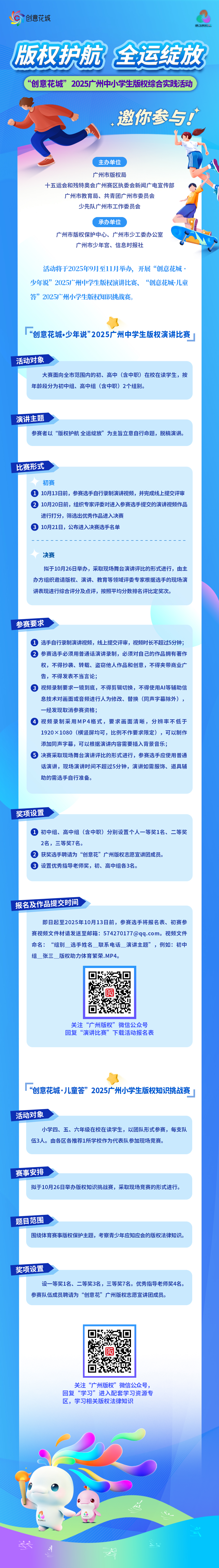 版权护航 全运绽放——“创意花城”2025广州中小学生版权综合实践活动邀您参与