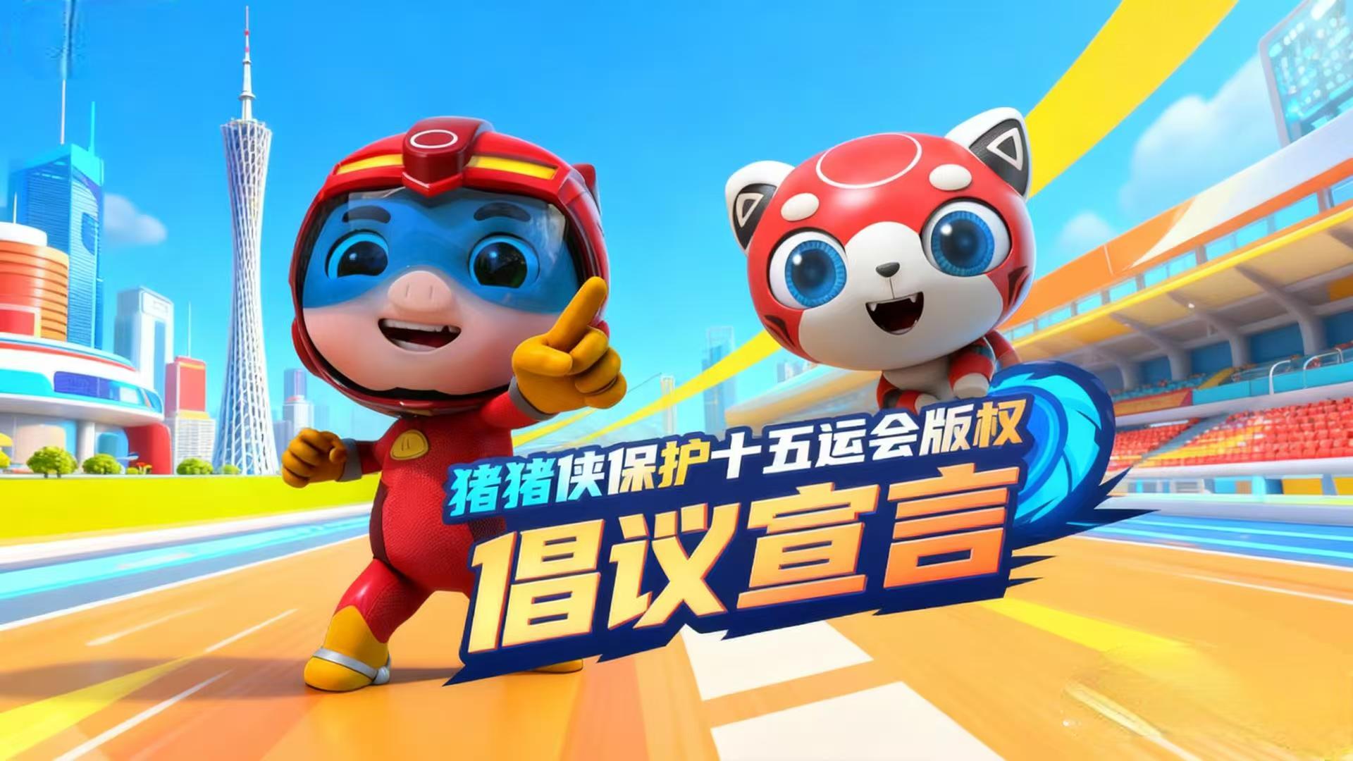 “猪猪侠报到!”现场发布的《猪猪侠保护十五运会版权倡议宣言》视频,以轻松活泼的动画形式,向现场青少年传递了“盗版周边别碰,认准官方店,看授权转播,为正版全运打call”的全运版权保护理念。